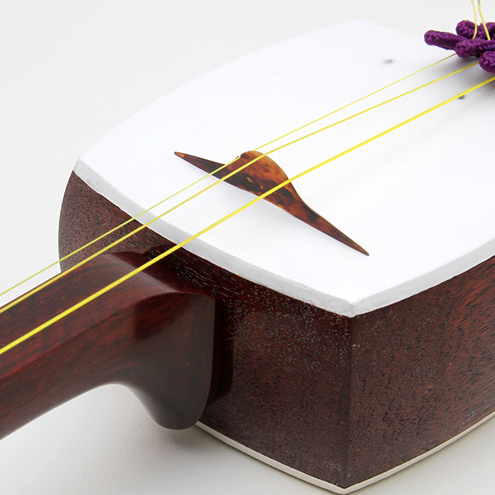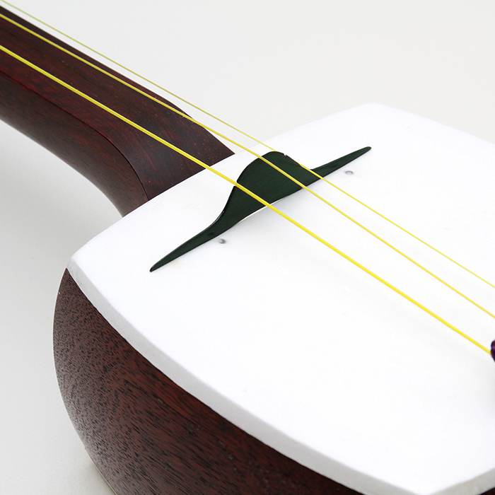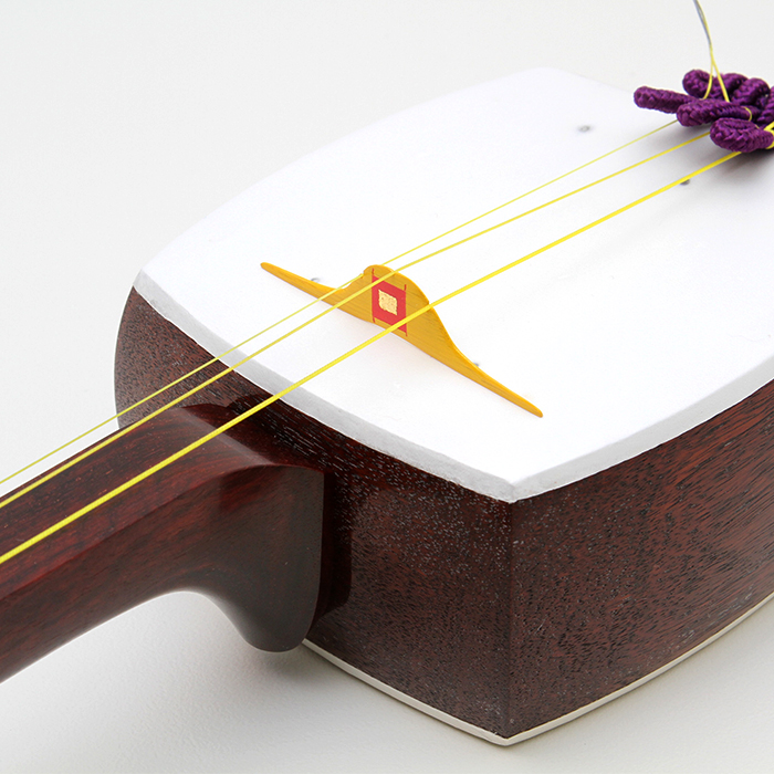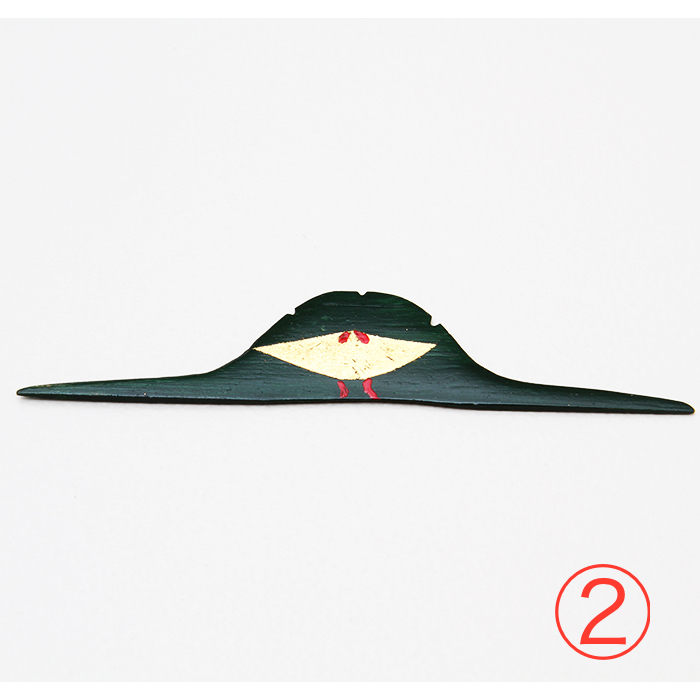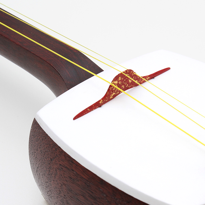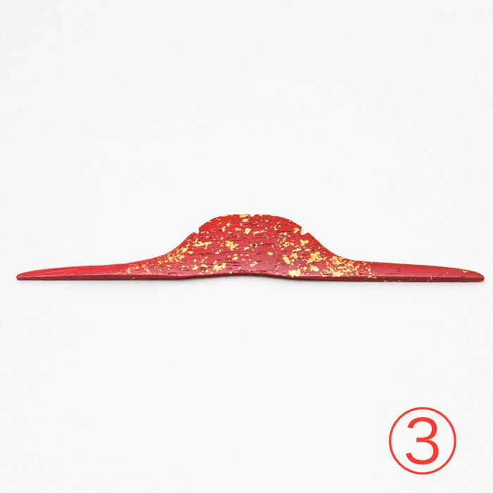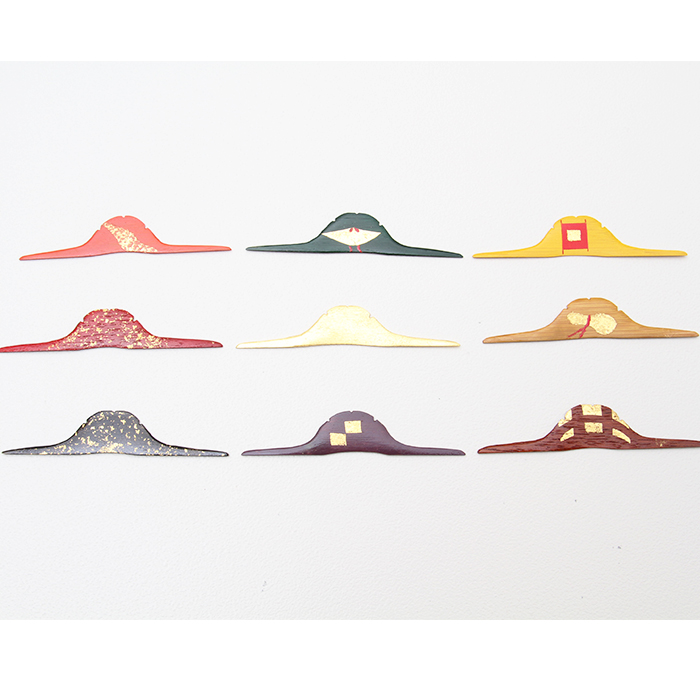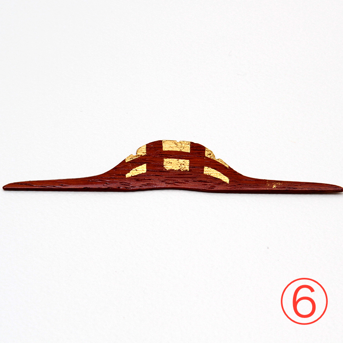 削り込んだ胡弓駒に「新うるし」で彩色した、すべて一点もの。