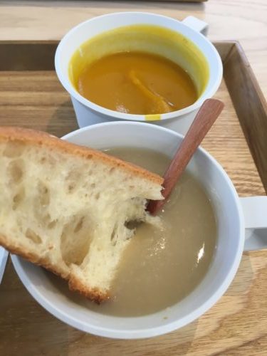 しゃみせん楽家は本日が仕事はじめ。立山連峰がくっくりと浮かび上がるいい天気だったので、スタッフと散歩がてらご近所の「muroya」でランチタイム。11種類のスープから2種類を選んでいただく「選べるあったかスープランチ」(900円)がスタートしたばかりということで、早速オーダー。かぼちゃ&酒粕、スタッフはほうれんそう&パプリカのスープでヘルシーにいただきました。ホントはクラフトビールを飲みたい!と思っていたけど、諦めてこちらにして正解。心も体もあったまる、新メニュー、オススメです。北前船の歴史あるまち岩瀬、今年もさらに盛り上がりますよー。
