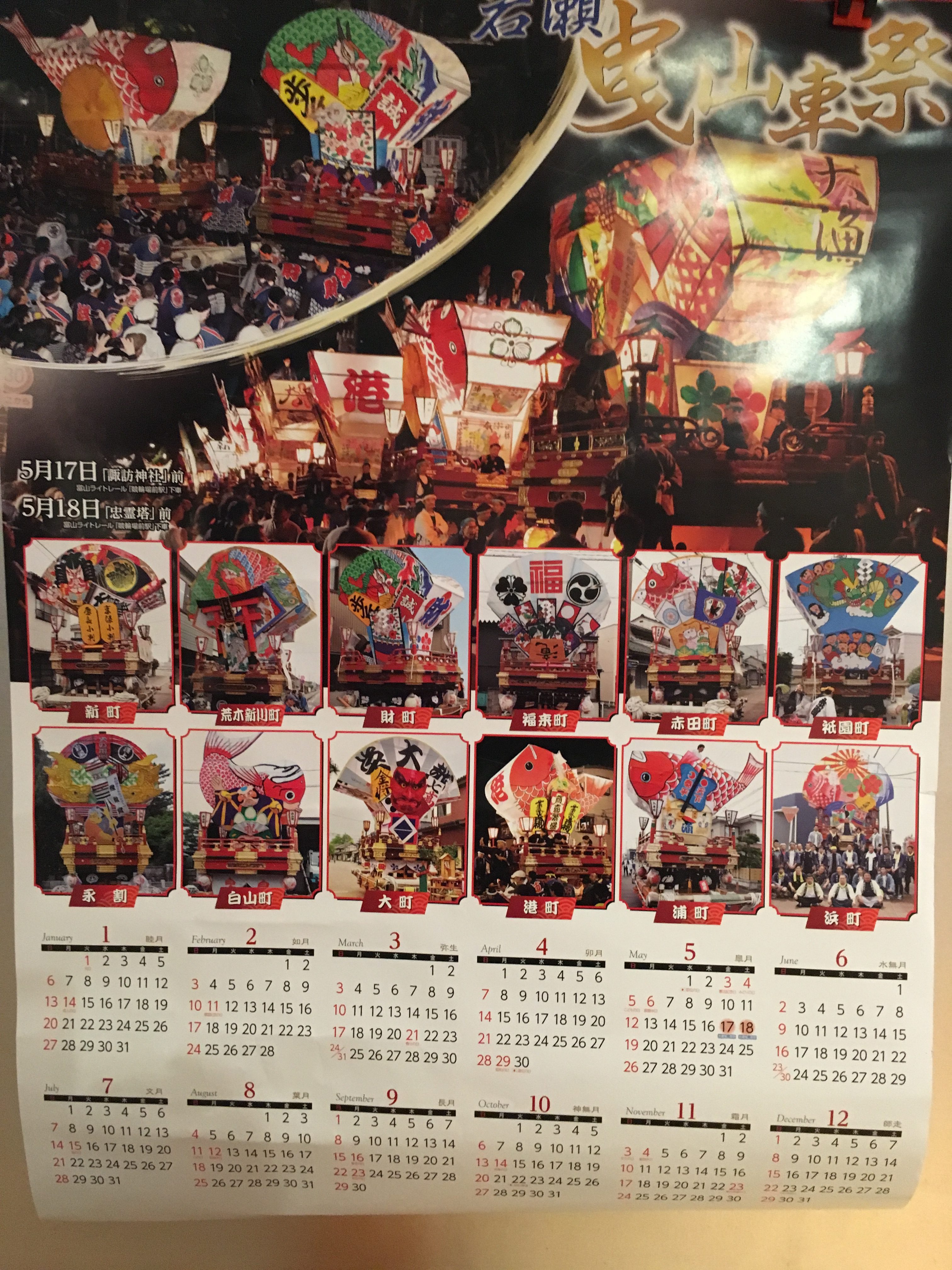 1つは恒例の岩瀬曳山。12基の勇壮は曳山が並んでます。