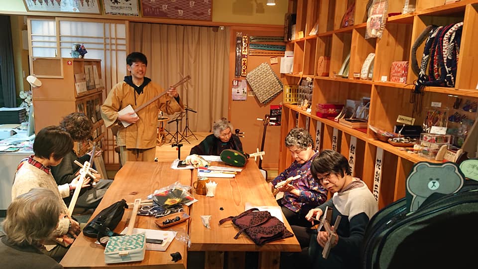 富山医療福祉専門学校の芸術の授業に毎年呼んでいただき、1回90分の授業を3コマ担当させてもらっています。 テーマは「民謡」。主に地元の民謡を三味線&唄で紹介し、地元自慢のテーマに創作したオリジナルの歌詞を 「ほたるいか音…