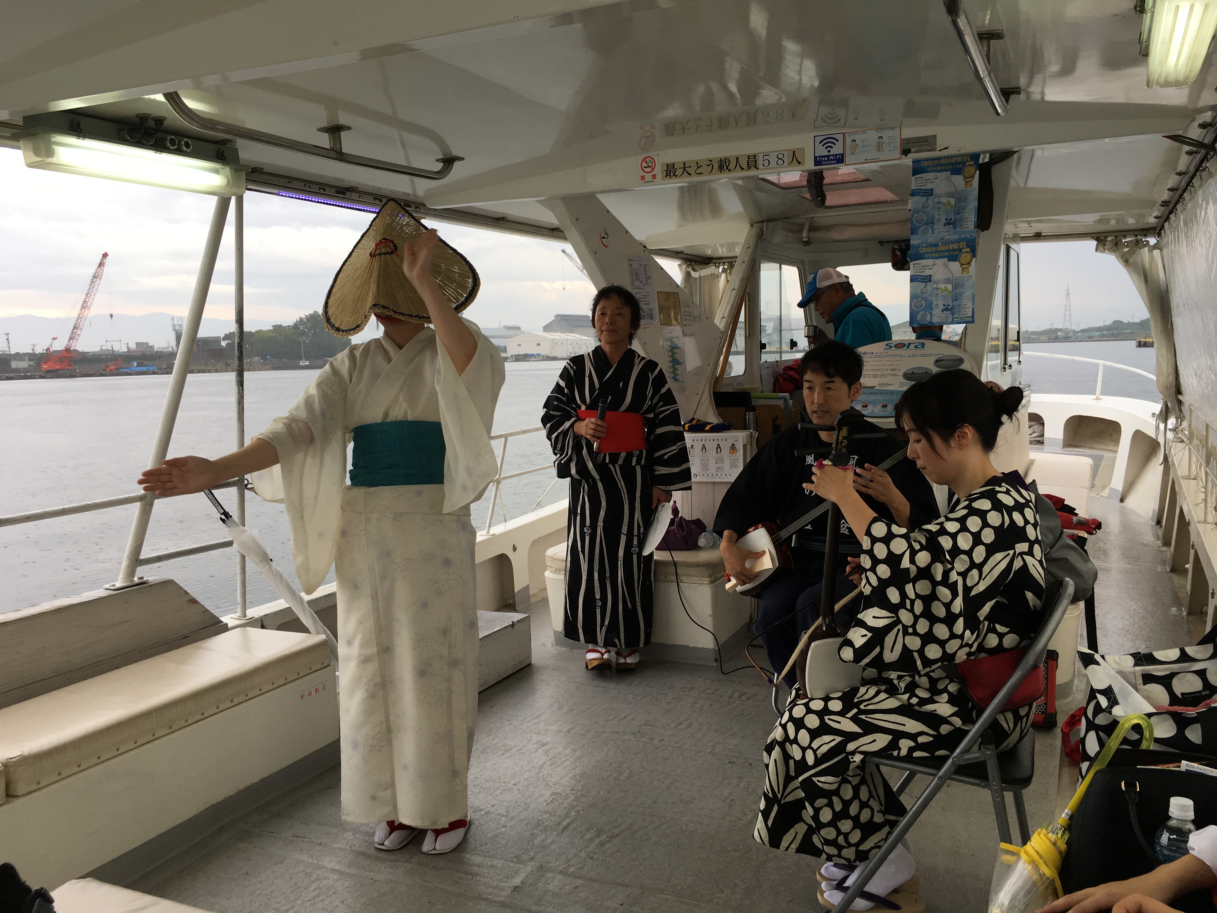 富山駅北から富山湾へ向かって伸びる富岩運河を運航する遊覧船があります。 港町岩瀬へ向かう観光船として人気があるこの船に、昨日から一週間乗り込んで、三味線を弾いてます。 おわら風の盆の期間にあわせて富山県が行っているもので…