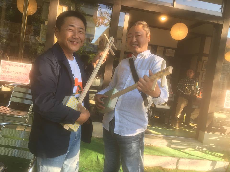 富山まち大学の授業「三味線で昭和歌謡」はじまりました。初心者の方が中心ということで、一回目の昨日は三味線より扱いやすいshaboを使用。三味線のハウツーを習得しました。天気もロケーションもよかったので、授業の合間でshaboデザインのプロモ用写真をパチリ!なかなかいい表情です。