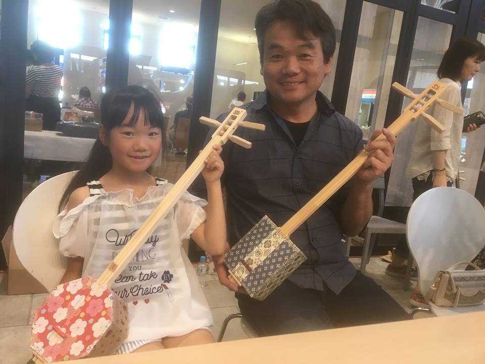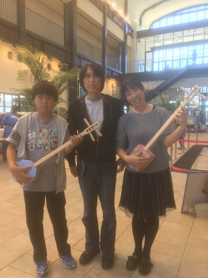 オリジナリティ溢れる三味線!がたくさん登場しました。会場のイベントムードと相まって、みなさんお祭り気分でお過ごしいただけたのではないかと思います。親子で、夫婦で、友達同士でと、様々な顔ぶれが、それぞれのマイSHABOで演奏を楽しむ様子は、実に感慨ぶかーいものでした。いやー、三味線って、いいですねー。このワークショップは各地へ出張しますので、興味を持たれたら気軽に声をかけてくださいねー。それぞれのマイSHABOでシャボシャボしましょう!ご来場のみなさん、ありがとうございましたー!