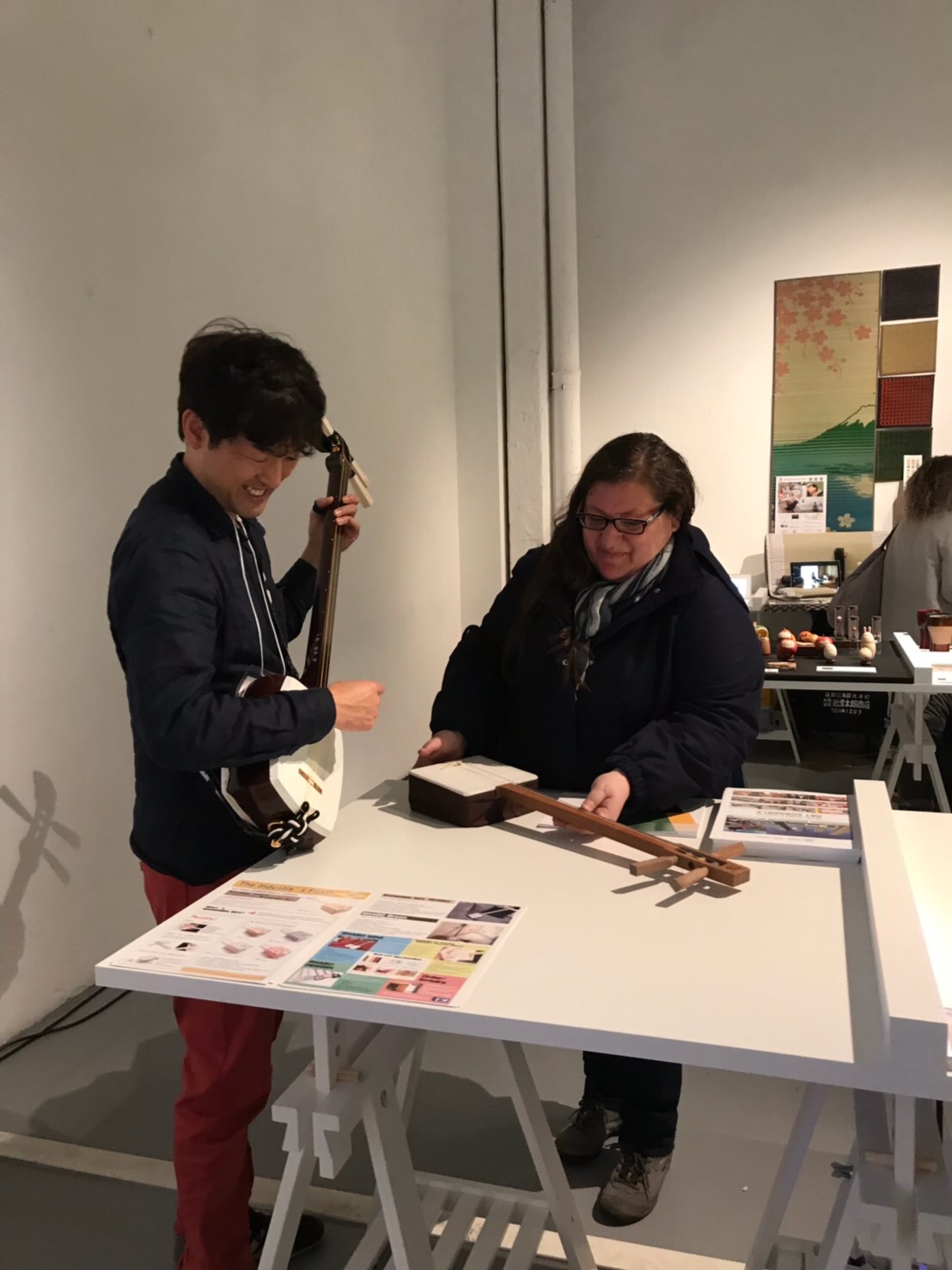 そこへ訪れたミラネーゼと一緒に、三味線プレイを楽しみました。このイベントのために、(いつもSHABOを作ってくれる)