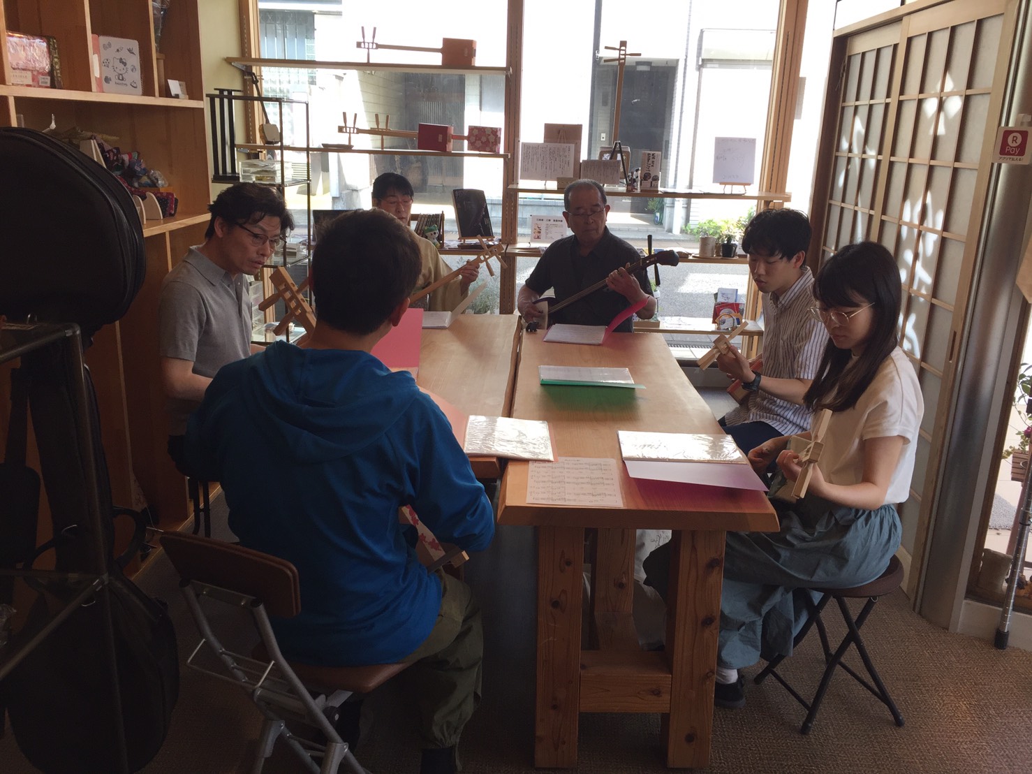 三味線ライブ&SHABOレッスンを行いました。参加者のうち3名は、