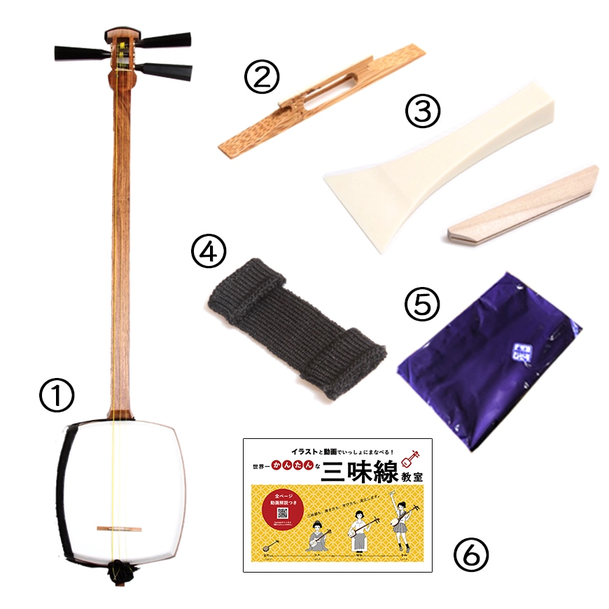 津軽三味線初心者に手にとって欲しい1丁。駒、バチなど三味線を引くに当たってます必要なものがそろっているから、届いたその日からすぐに始められます。