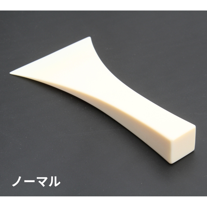 津軽三味線プレイヤーの視点から、糸や皮との負荷を計算した研磨をバチ先に施し、べっ甲に近い「しなり」をプラスチックで再現。