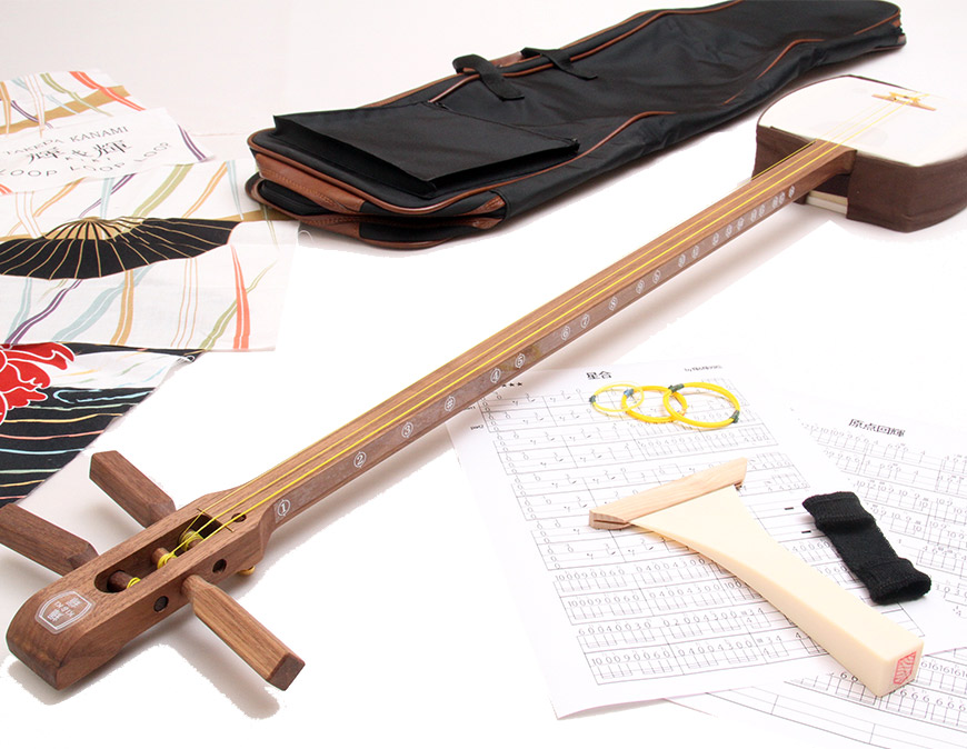 This is a special SHABO Premier set recommended for those who are just starting out by KIKI, a Tsugaru Shamisen female duo who plays beautiful melodies with a unique and powerful sound. The SHABO Premier is equipped with a Higashi Sawari, which gives it a sound closer to that of a shamisen. It is made of the silk string used in traditional shamisen (the third string is nylon), and comes with a compact Bachi that fits comfortably in a hand, a soft case, and replacement strings.
