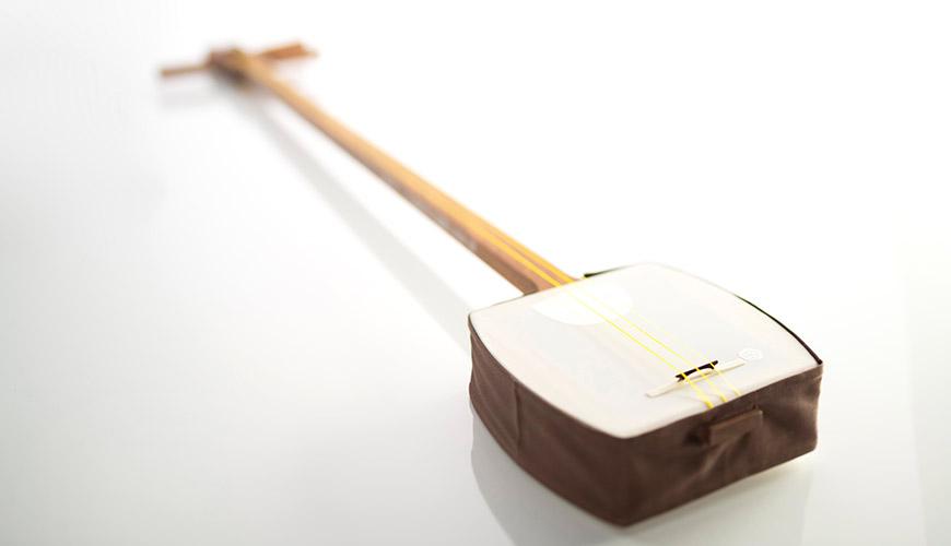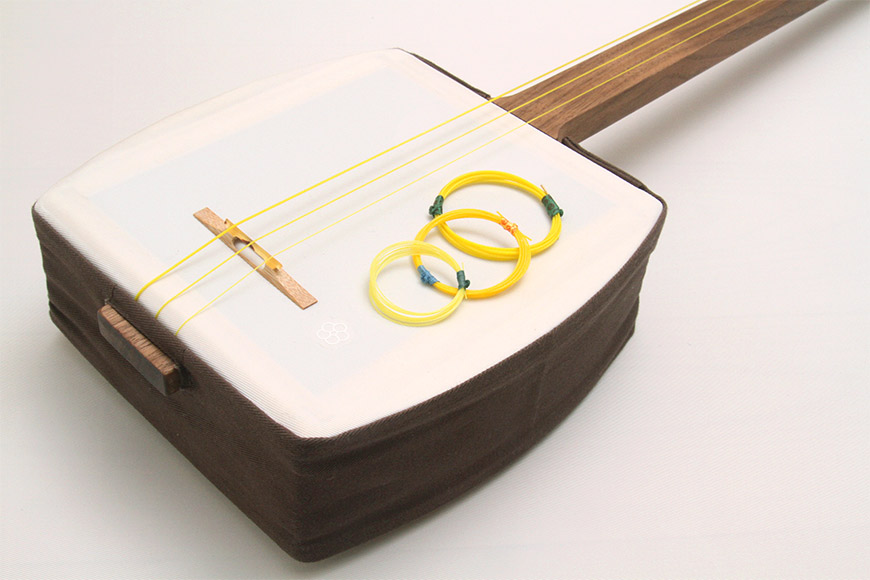 伝統的な三味線のスタイルはそのままに、カジュアルなフォルムで新たな価値をプラス。皮は合成皮で皮割れの心配もなし。いつでも、どこでも、気軽に持ち運んで練習ができます。