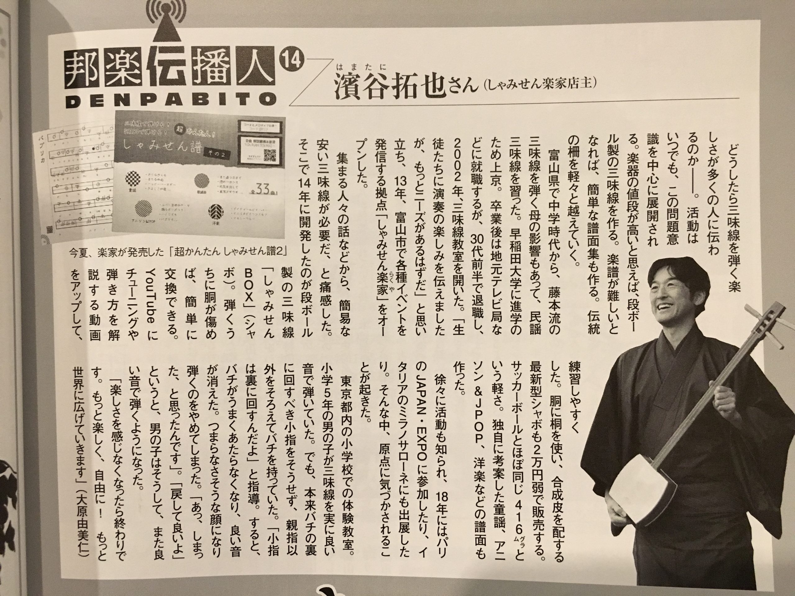 邦楽の専門雑誌の連載コーナー「邦楽伝播人」(ほうがくでんぱびと)に取り上げていただきました。