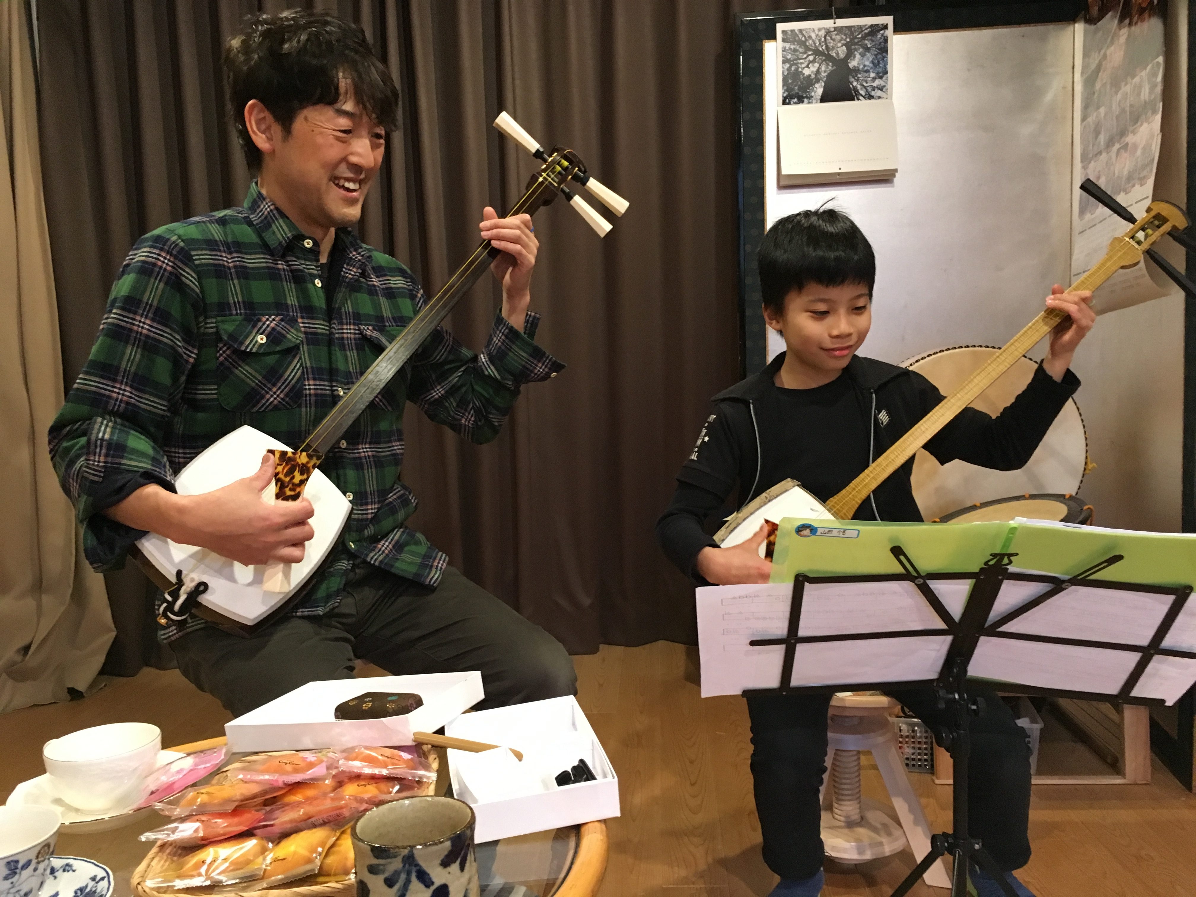 6月&7月のシャミcafeをまとめてアップ。 よっちゃんの手づくりスイーツをモグモグしながら、三味線ライブや演奏体験を楽しみました。 1時間のカフェタイムで、超かんたん三味線をマスター! 三味線って、たのしーなー!という…