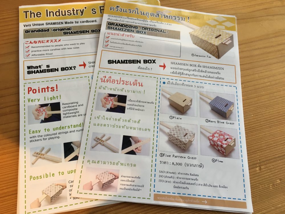 バンコクinThailandへの初出店へ向けて、準備が大詰めを迎えています。 タイ語のフライヤーが仕上がってきました。プライスカード作りました。荷物現地到着した旨メール届きました。 さて、あとは、、ライブ備えて三味線の練…
